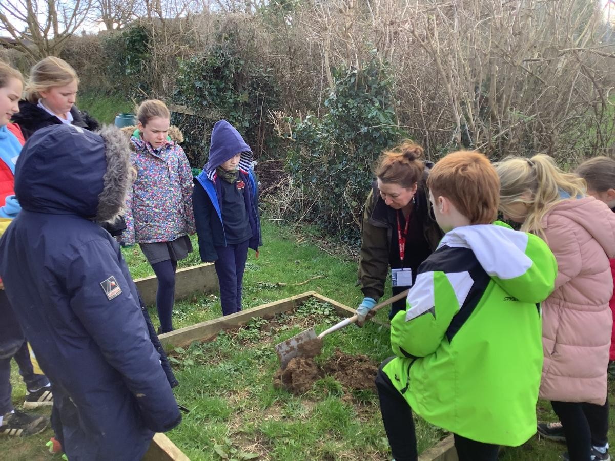 The Eco committee from Kingfisher class along with some other volunteers from the class worked wonders on the veg beds by the village hall. They mulched 3 beds with cardboard and sowed 3 varieties of broad beans after preparing another bed. A blackcurrant plant was also added! Thank you to Angela from Food for Thought who came to support us with our gardening.
